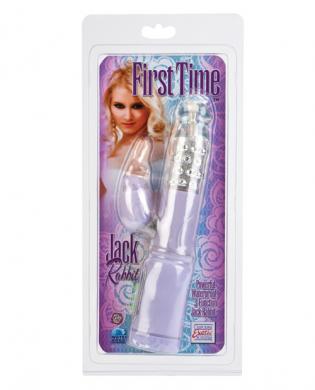 The Cal Exotic's First Time Jack Rabbit is the perfect rabbit for your first time. It has 3 power packed functions. The rabbit features non-jamming rotating silver beads. The glow-in-the-dark buttons make it easy to use. May be used in or out of water. Make it a memorable experience with the First Time Collection.
