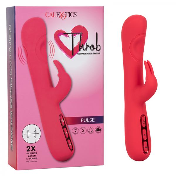 With 2 times the powerful thumping action, the thrilling Throb Pulse is made to get your pulse racing. This powerful rabbit vibrator has 2 uniquely placed thumping pads on both sides of the shaft to deliver 3 speeds of deep, rumbling thumping. A flickering rabbit teaser is made for knee-shaking stimulation as it shimmies to the rhythm of 7 intense functions of vibration. Embrace fully personalized pleasure with the independently controlled 3 speeds of thrilling thumping action and 7 functions of vibration.