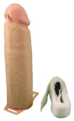 The Perfect Extension Harnessed extension. Perfect Extension 8 inches is made of soft rubber with a realistic look and feel. Straps help hold on the extension, designed to use with or without an erection. The rubber on these is about .25 inches thick. These extensions are 2 inches wide on the outside and about 1.5 inches wide on the inside. Length to insert the penis on the inside is 6 and 7/8 inches. Fits up to a 50 inches waist. Unisex toy. Easy to use. Plastic snaps. Just adjust to your waist size and click together. Belt like strap on harness.