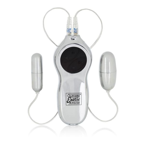 Sterling Collection Combo 5 is a powerful 7 function controller with 2 jacks. Independent controls. Safe and pure for body and pleasure. Made using phthalate free, non-toxic materials ABS plastic controller, ABS plastic with silver plating bullet vibrators. Vibrating sex toy requires 4 AA batteries, not included. Do not leave batteries in the vibrator between uses.