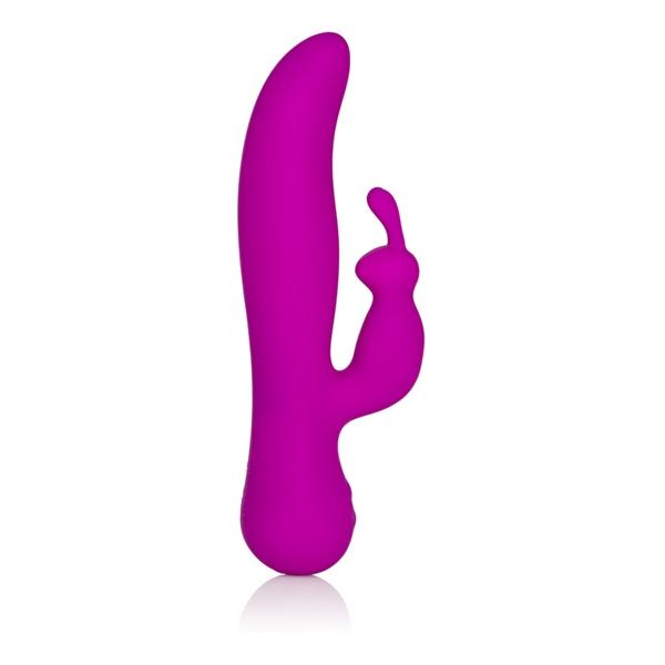 Vanity by Jopen Vr16 Dual Stimulating Rechargeable Vibrator. Complete charge in 3 hours. Independent intense incremental speed controls. Dual motors Vibrating Teaser Rotating Shaft. Instant on/off function. Easy to follow instructions included. Waterproof vibrations for play outside the bedroom. Discreet whisper quiet operation. Premium Silicone maintains and retains body heat. Body friendly unscented, non-porous, and hypoallergenic materials. Satin finish and virtually seamless touch. Rechargeable premium Lithium Ion battery. LED charging and power lights. Security travel lock. Vibrating sex toy is powered by PowerBullet. Shaft measures 5.25 inches long by 1.5 inches wide. Clitoral stimulator measures 3 inches long by 1 inch wide. Vibrator measures 8.5 inches long by 2.75 inches wide overall. * Comes with USB power cable.