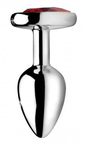 Booty Sparks Red Heart Gem Small Anal Plug from XR Brands. Spark your desire for decadent anal play with this beautiful Booty Sparks plug! Featuring a smooth metal finish in lightweight aluminum, it features a sweet heart shaped gem in a deep crimson red.